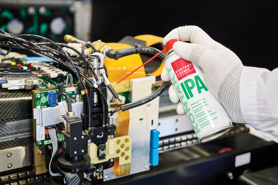 99,7 % pure isopropanol in a spray can. The ready to hand aerosol enables a precise, clean application. Ideal as multi-purpose cleaner to improve the performance and reliability of electrical and electronic equipment. Features: • Extremely pure. • Evaporates completely, leaving no residue. • Non-staining on glass and metals. • Safe application due to the sealed can. • Less soiling. • Trouble free storage. • Extension tube for hard-to-reach areas.